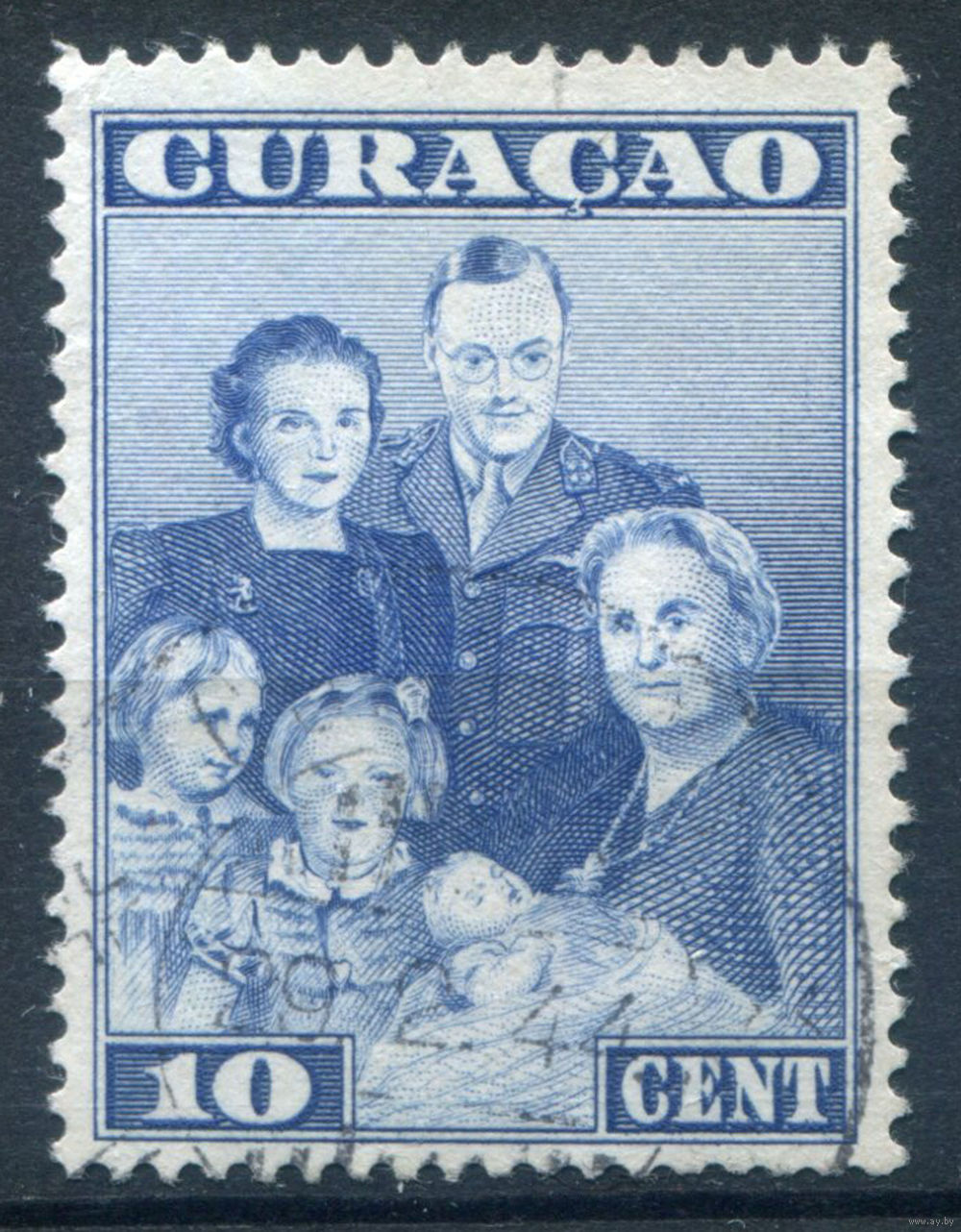 Нидерландские колонии - Кюрасао - 1943г. - королевская семья, 10 с - 1 марка - гашёная [Mi 207]. #3-WB-81-A-1