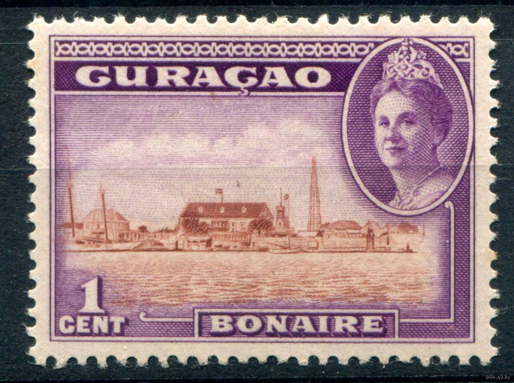 Нидерландские колонии - Кюрасао - 1943г. - ландшафты, достопримечательности, королева Вильгельмина, 1 с - 1 марка - MLH, есть жёлтое пятнышко на зубчике перфорации [Mi 198]. #3-WB-85-A-1