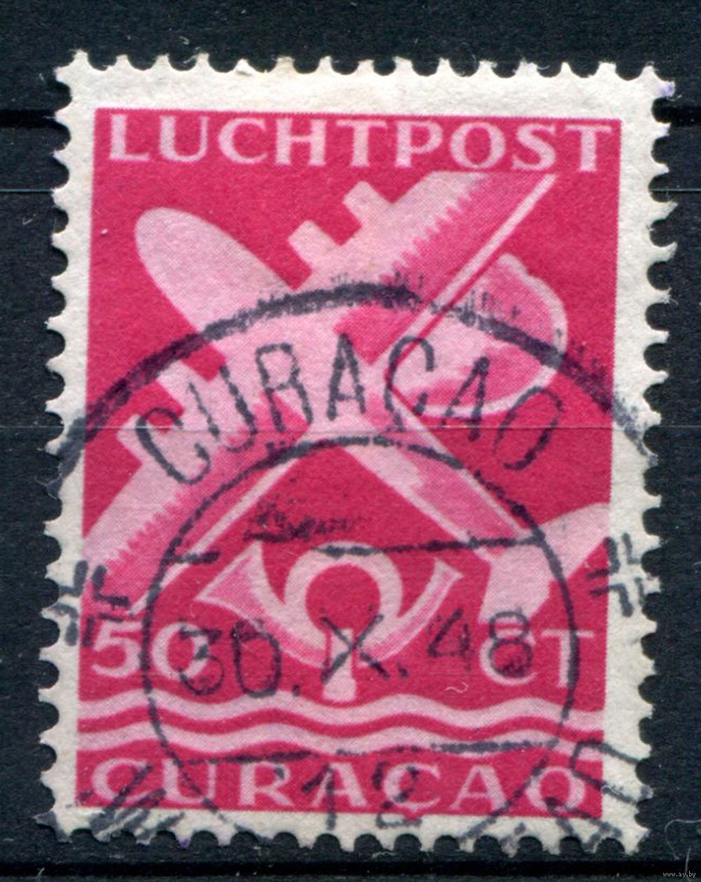 Нидерландские колонии - Кюрасао - 1947г. - авиация, авиапочта, печать Кюрасао, 50 с - 1 марка - гашёная [Mi 263]. #3-WB-77-A-1