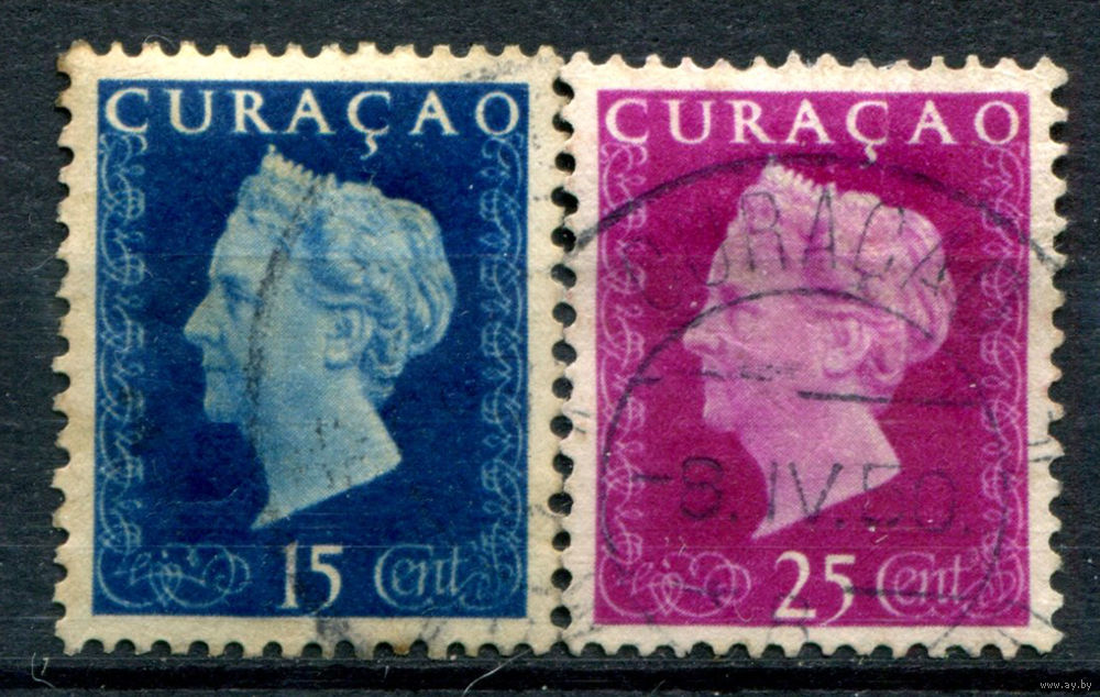 Нидерландские колонии - Кюрасао - 1948г. - королева Вильгельмина - 2 марки - гашёные. #3-WB-101-A-1