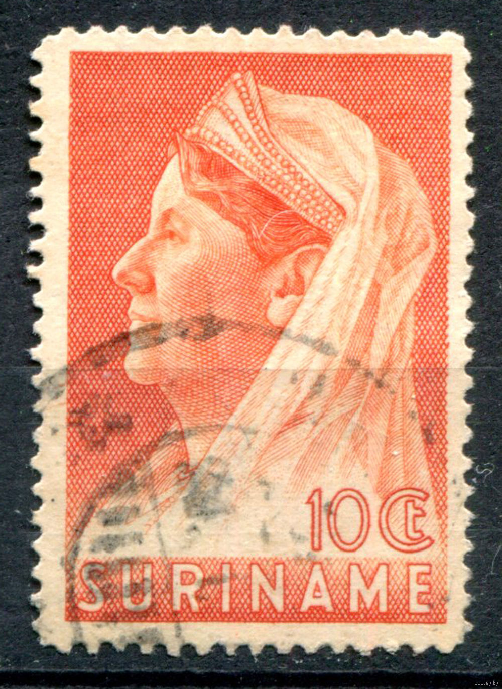 Нидерландские колонии - Суринам - 1936/39г. - королева Вильгельмина, перфорация 14, 10 с - 1 марка - гашёная [Mi 187]. #3-WB-87-A-1
