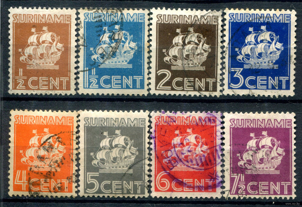 Нидерландские колонии - Суринам - 1936/39г. - нидерландский корабль, 8 м - 8 марок - гашёные. #3-WB-99-A-1