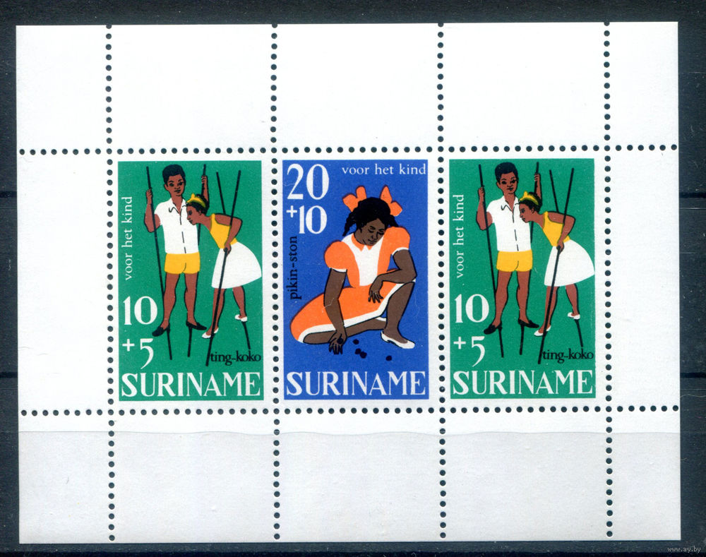 Нидерландские колонии - Суринам - 1967г. - дети, детские игры - 1 блок - полная серия, MNH с небольшим пятнышком на клее [Mi bl. 7]. #3-WB-95-KS-2