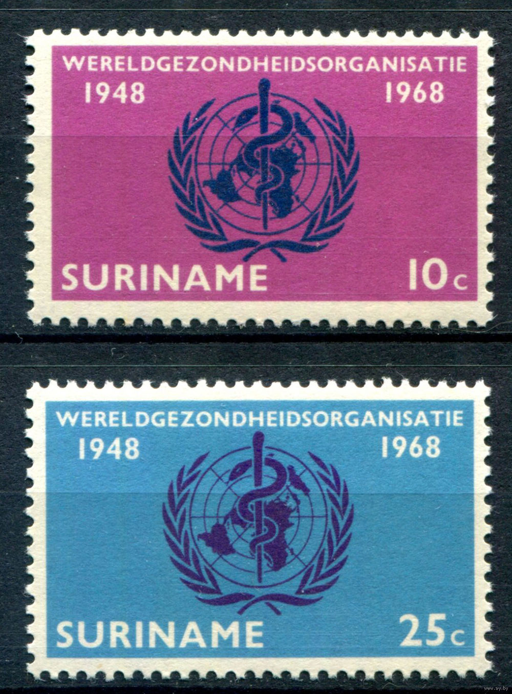 Нидерландские колонии - Суринам - 1968г. - 20 лет ВОЗ - 2 марки - полная серия, MNH [Mi 538-539]. #3-WB-83-A-1