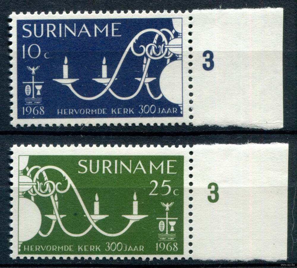 Нидерландские колонии - Суринам - 1968г. - 300 лет реформатской церкви - 2 марки - полная серия, MNH [Mi 540-541]. #3-WB-83-A-2