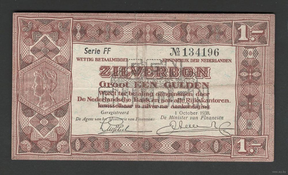 Нидерланды 1 гульден 1938 года. Тип Р-61. Состояние VF+