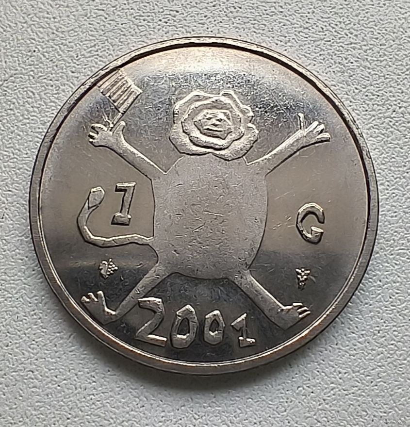 Нидерланды 1 гульден 2001 Последний гульден, детский рисунок - лев с флагом в руках 1-4-16