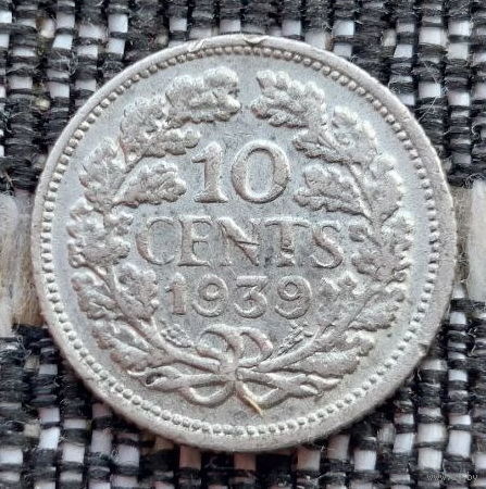 Нидерланды 10 центов 1939 года. Королева Вильгельмина. II Мировая война. Серебро! Сторгуй за свою цену, предложи обмен!