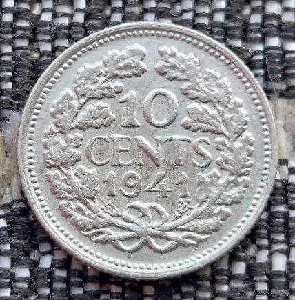 Нидерланды 10 центов 1941 года. Королева Вильгельмина. II Мировая война. Серебро! Сторгуй за свою цену, предложи обмен!
