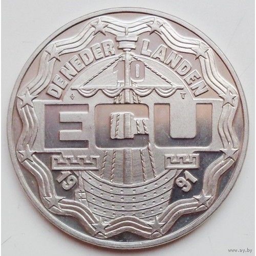 Нидерланды 10 ЭКЮ, 1991 Эразм Роттердамский UNC капсула