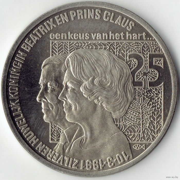 Нидерланды 2.5 ЭКЮ, 1991 25 лет со дня свадьбы Королевы Беатрикс UNC