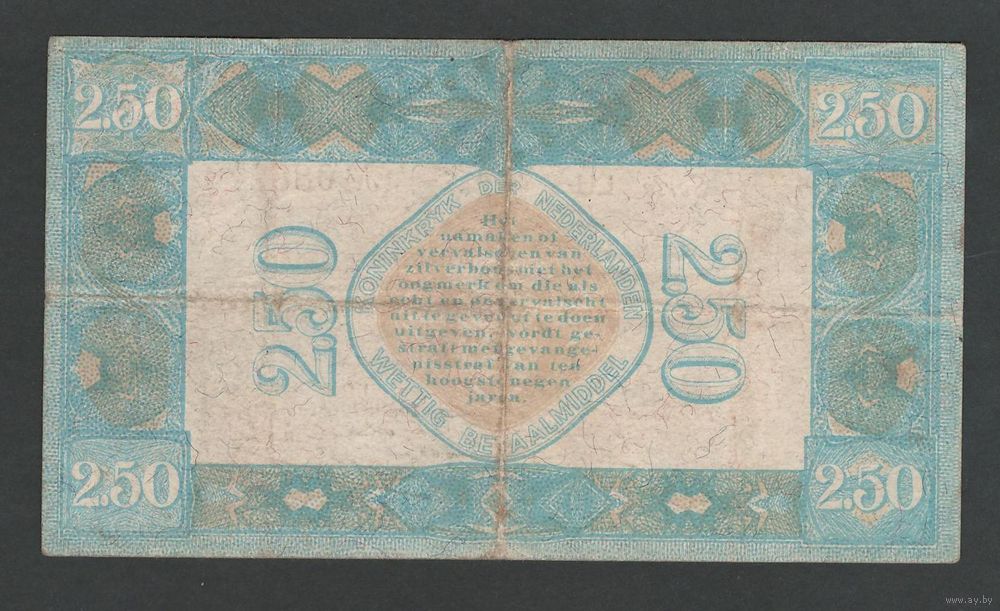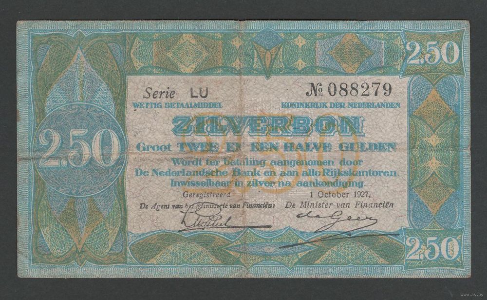 Нидерланды 2,5 гульдена 1927 года. Тип Р-20. Состояние VF