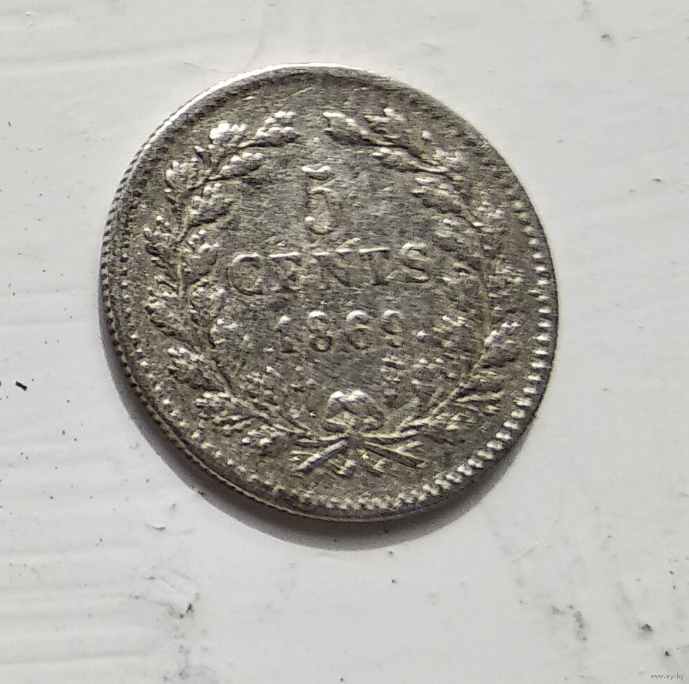 Нидерланды 5 центов, 1869 Ag 5-1-22