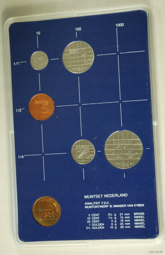 Нидерланды, годовой набор монет (Голландия) 1986 год, 5+10+25 центов 1+2,5 гульдена + жетон UNC.