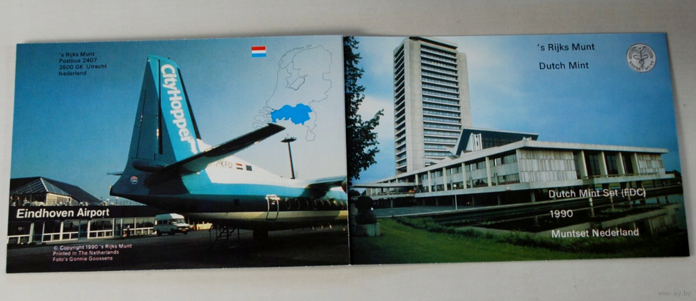 Нидерланды, годовой набор монет (Голландия) 1990 год, 5+5+10+25 центов 1+2,5 гульдена + жетон UNC.