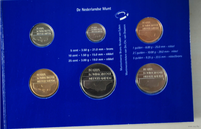 Нидерланды, годовой набор монет (Голландия) 1999 год, 5+5+10+25 центов 1+2,5 гульдена UNC.