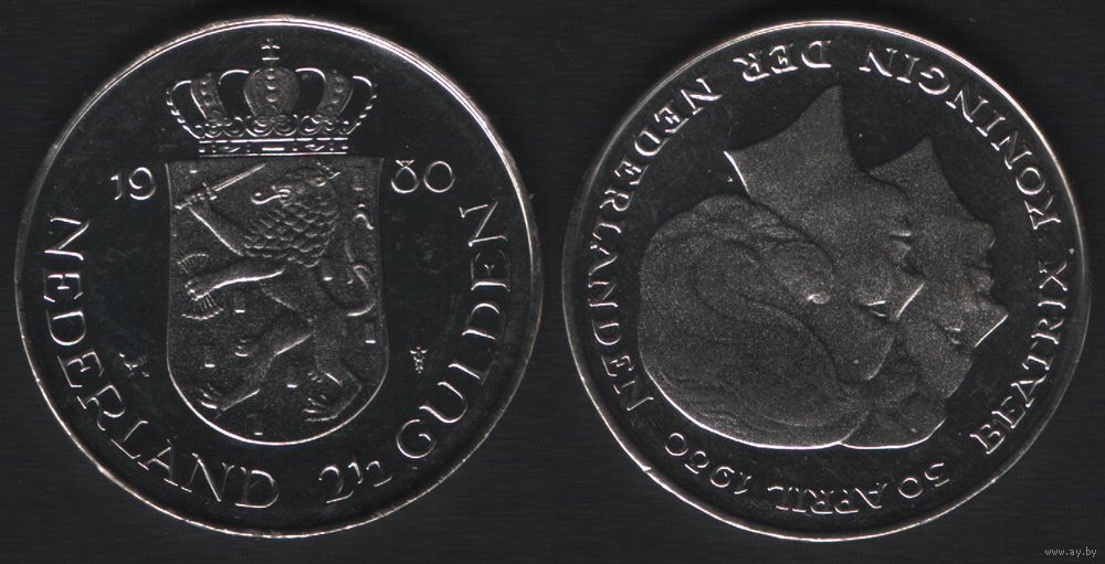 Нидерланды km191 2 1/2 гульдена 1980 год (обращ) (nf02