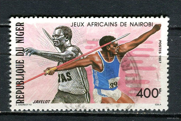 Нигер - 1987 - Спорт Метание копья 400Fr - [Mi.1026] - 1 марка. Гашеная. (Лот 17Js)-T25P1