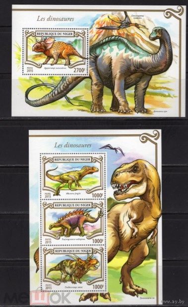 НИГЕР 2015 СЕРИЯ Блоков динозавры рептилии фауна MNH