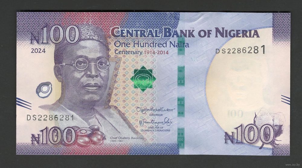 Нигерия 100 найра 2024 года. Тип Р-41. Состояние UNC