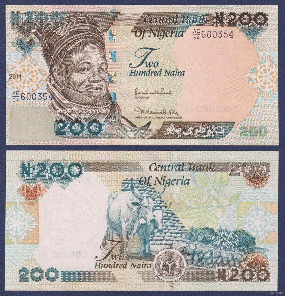 Нигерия, 200 найра 2011 г, P-29j (AE, политик Ахмаду Белло, быки), UNC