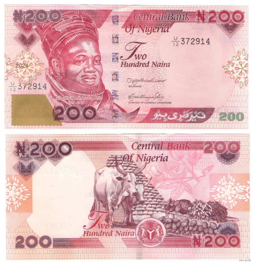 Нигерия 200 найра 2024 год Новый дизайн и цветовая гамма UNC
