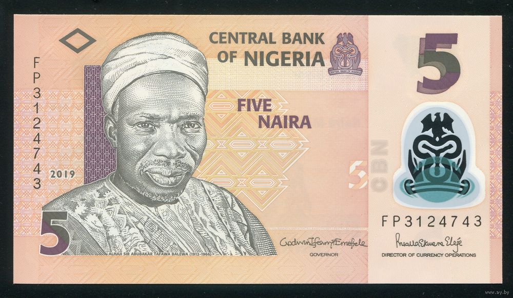 Нигерия 5 найра 2019 г. P38j. Серия FP. Полимер. UNC