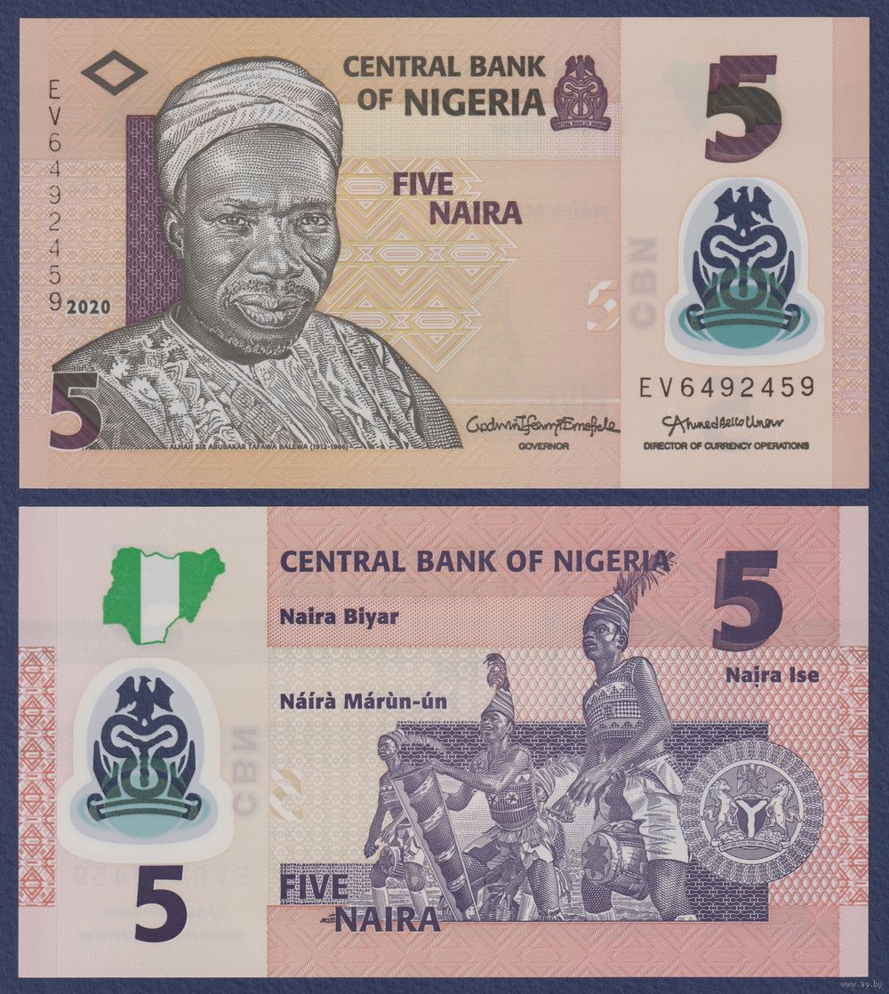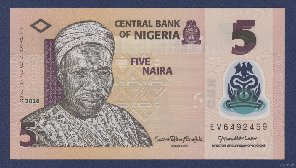 Нигерия, 5 найра 2020 г, P-38 (полимер, политик Абубакар Тафава Балева, барабанщики Нкпокити), UNC