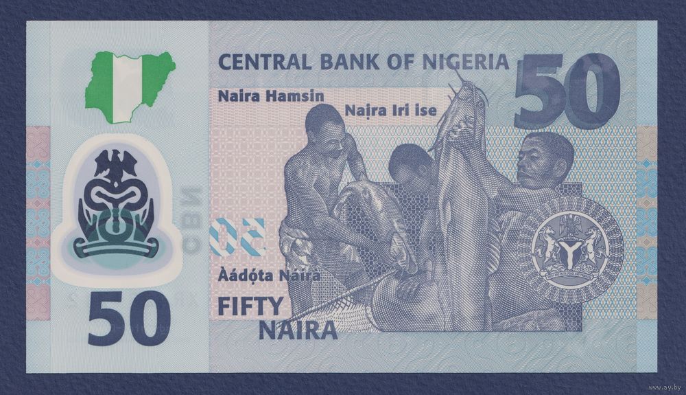 Нигерия, 50 найра 2020 г, P-40 (XR, полимер, рыбаки), UNC