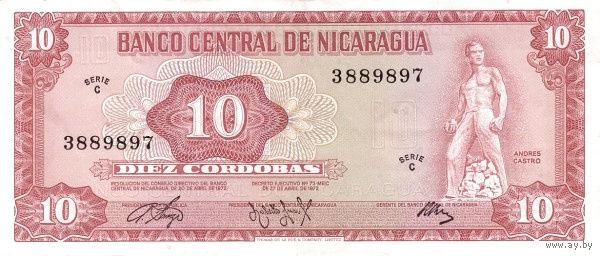 Никарага 10 кордоба образца 1972 года UNC p123