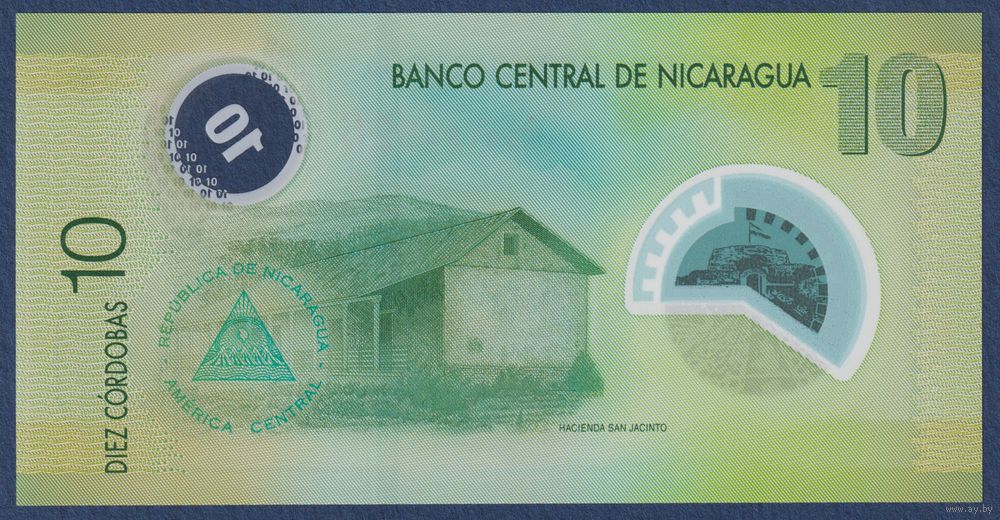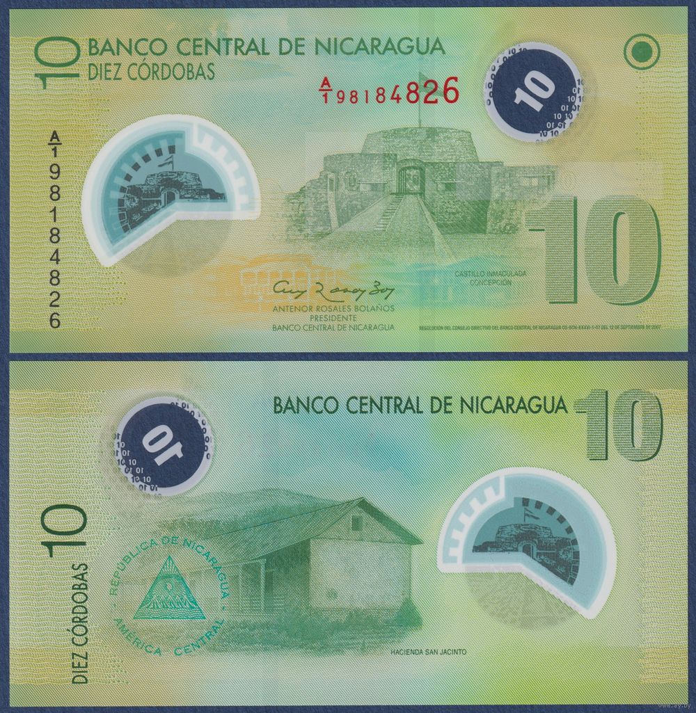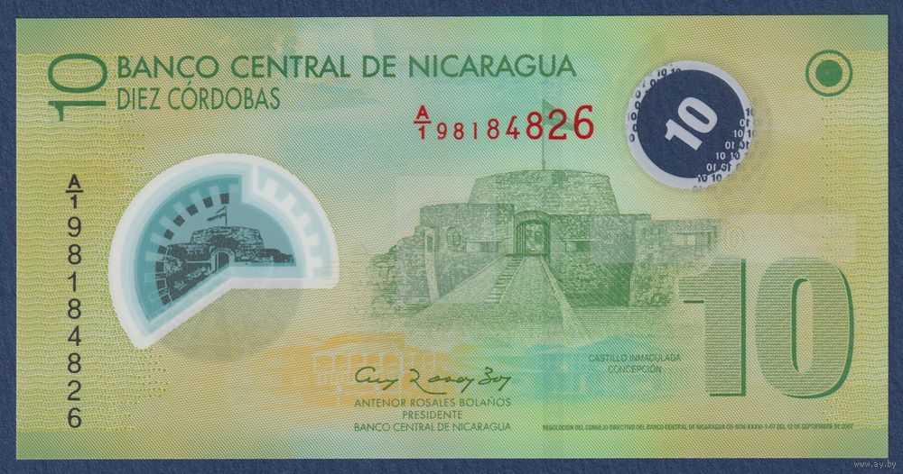 Никарагуа, 10 кордоба 2007 г., P-201b (A|1, полимер, Замок Непорочного Зачатия в Рио-Сан-Хуан), UNC