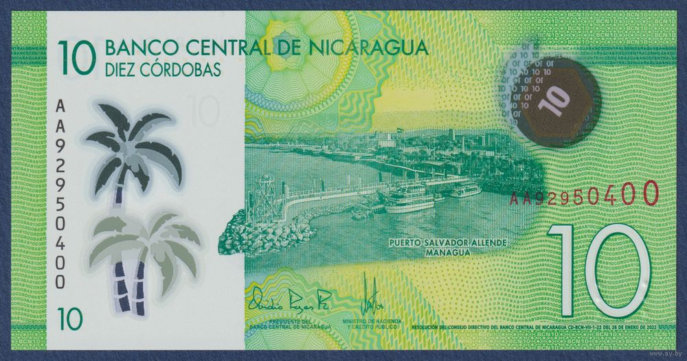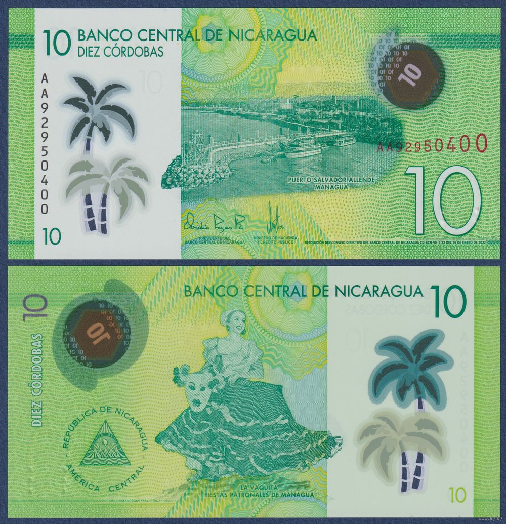 Никарагуа, 10 кордоба 2022 г., P-209 (AA, полимер, Пуэрто-Сальвадор Альенде, праздник Святого покровителя Манагуа), UNC