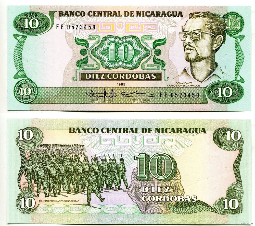 Никарагуа 10 Кордоба образца 1985 года UNC p151 серия FE