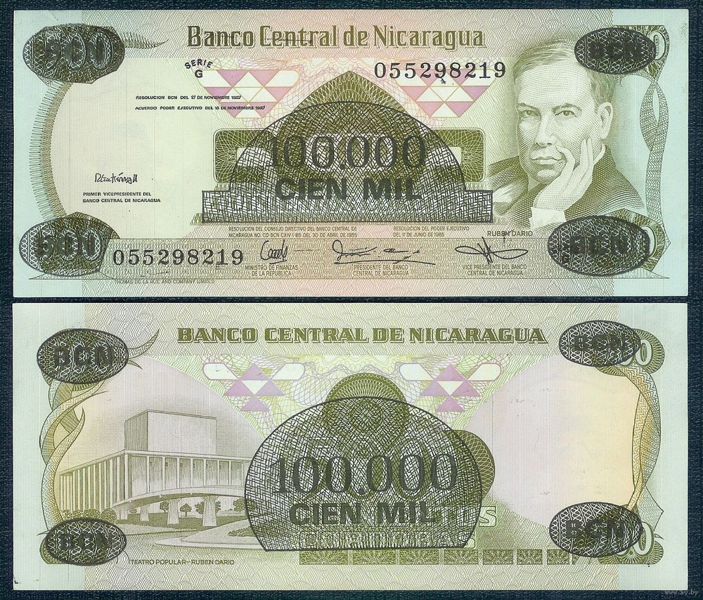 Никарагуа 100.000 на 500 кордоба 1987 год, P149, UNC