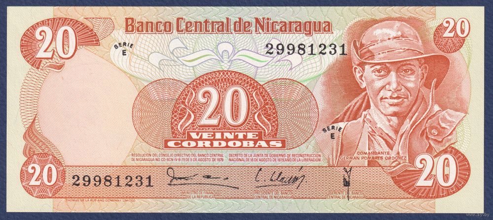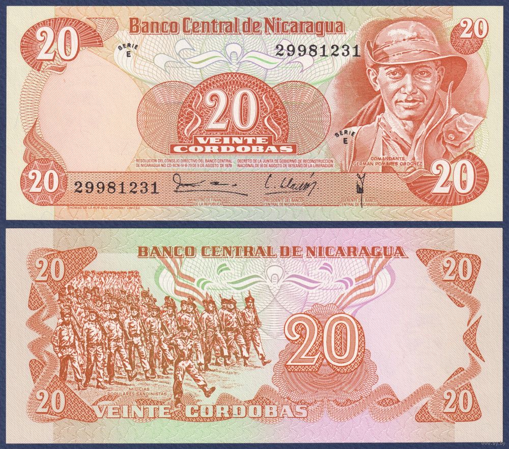 Никарагуа, 20 кордоба 1979 г., P-135 (E, команданте Херман Помарес Ордоньес), UNC