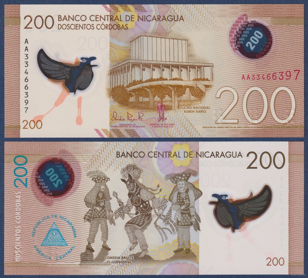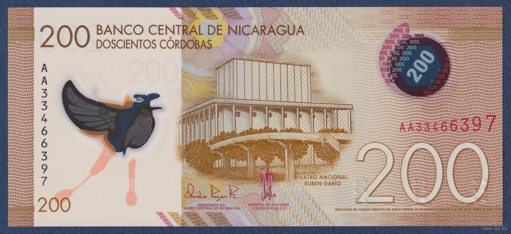 Никарагуа, 200 кордоб 2022 г, P-213 (AA, полимер, национальный театр имени Рубена Дарио в Манагуа), UNC