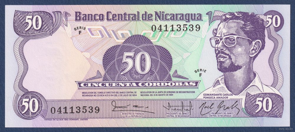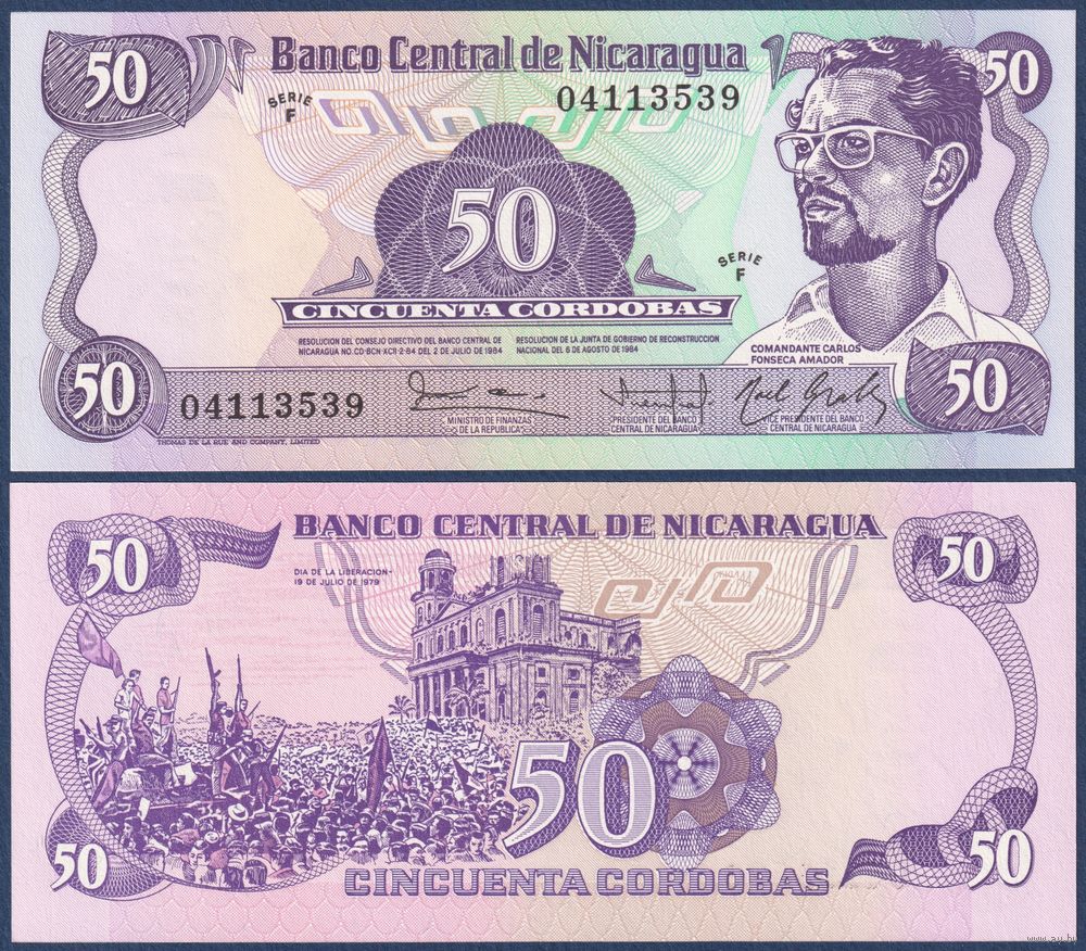 Никарагуа, 50 кордоба 1984 г., P-140 (F, команданте Карлос Фонсека Амадор), UNC
