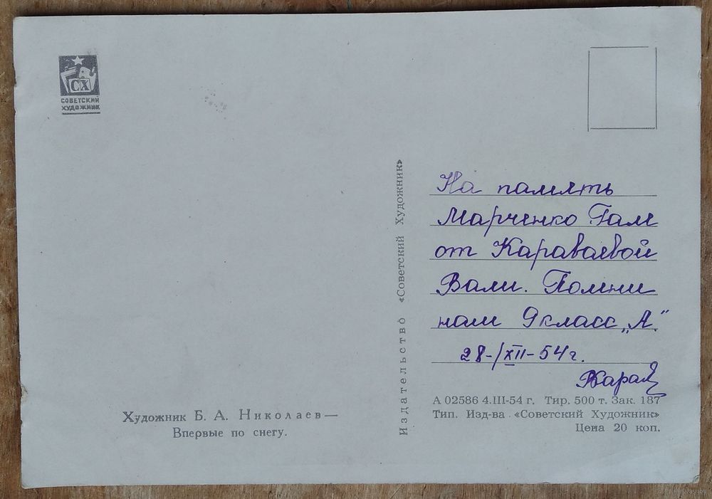 Николаев Б. Впервые на снегу. 1954 г. Подписана