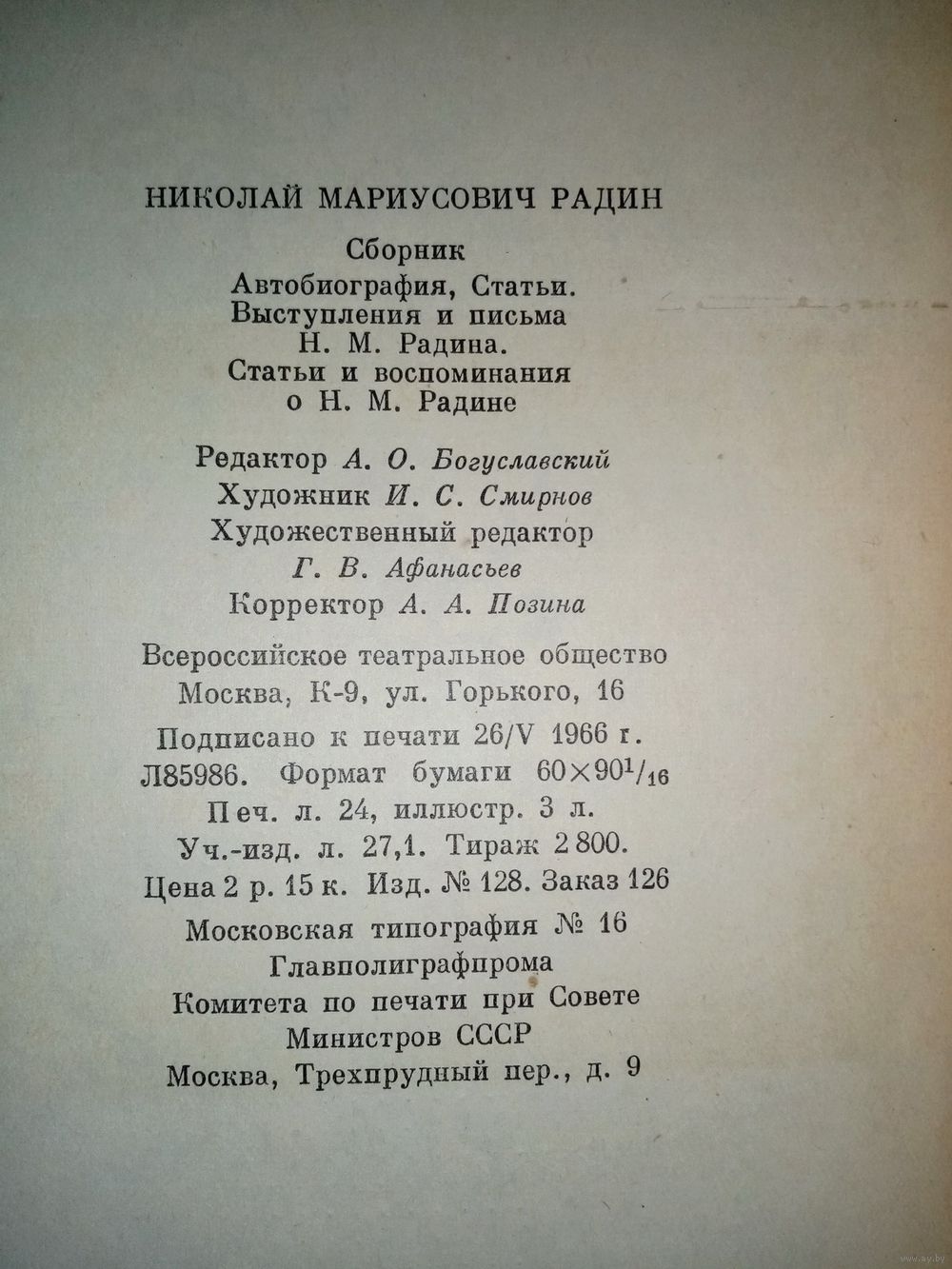 | Издательство | ВТО Всероссийское театральное общество |
