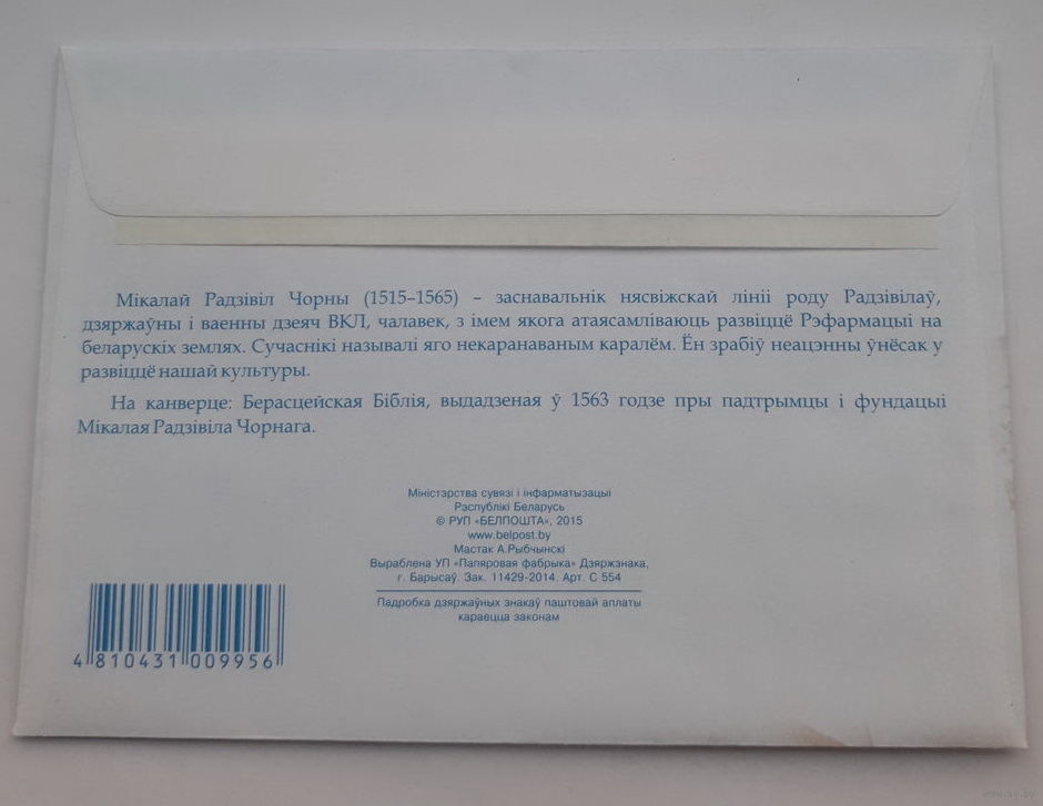 | Николай Радзивилл Черный 500 лет со дня рождения, 2 конверта без спецгашения + со спецгашением Мікалай Радзівіл Чорны | |