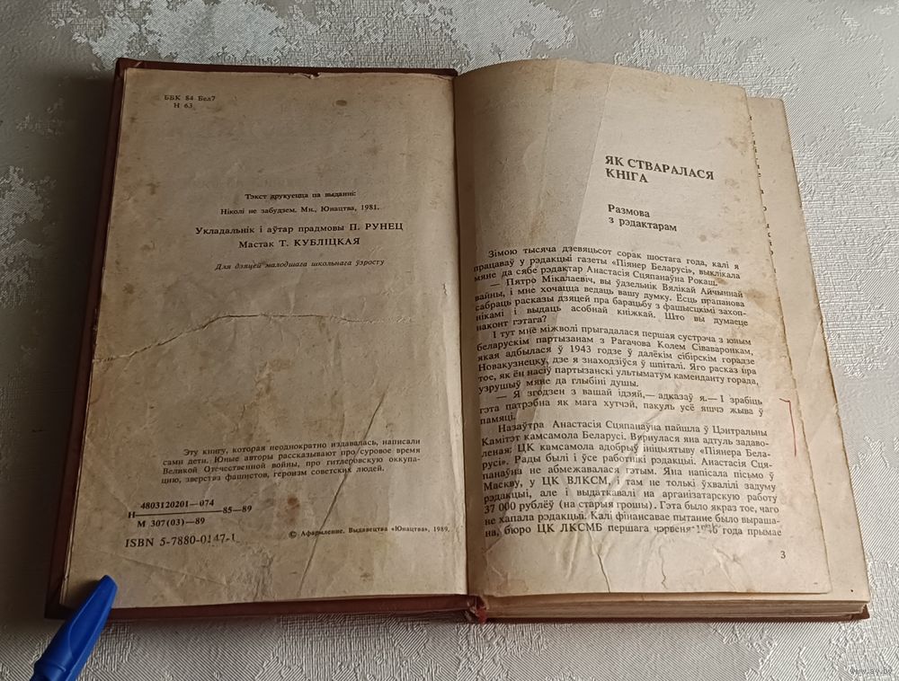 Ніколі не забудзем: Расказы беларускіх дзяцей аб днях Вялікай Айчыннай вайны: Для мал. шк. узросту/Уклад. і аўт. прадм. П. Рунец; Маст. Т. Кубліцкая. — Мн.: Юнацтва, 1989. — 287 с.: іл.