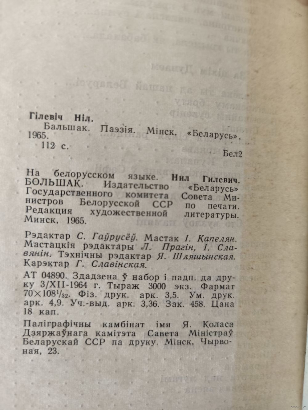 Ніл Гілевіч, апошні народны паэт Беларусі, 4-ая кніжка вершаў "Бальшак" 1966