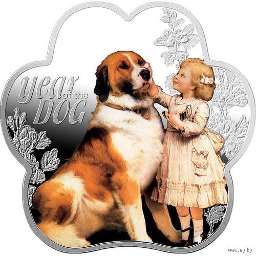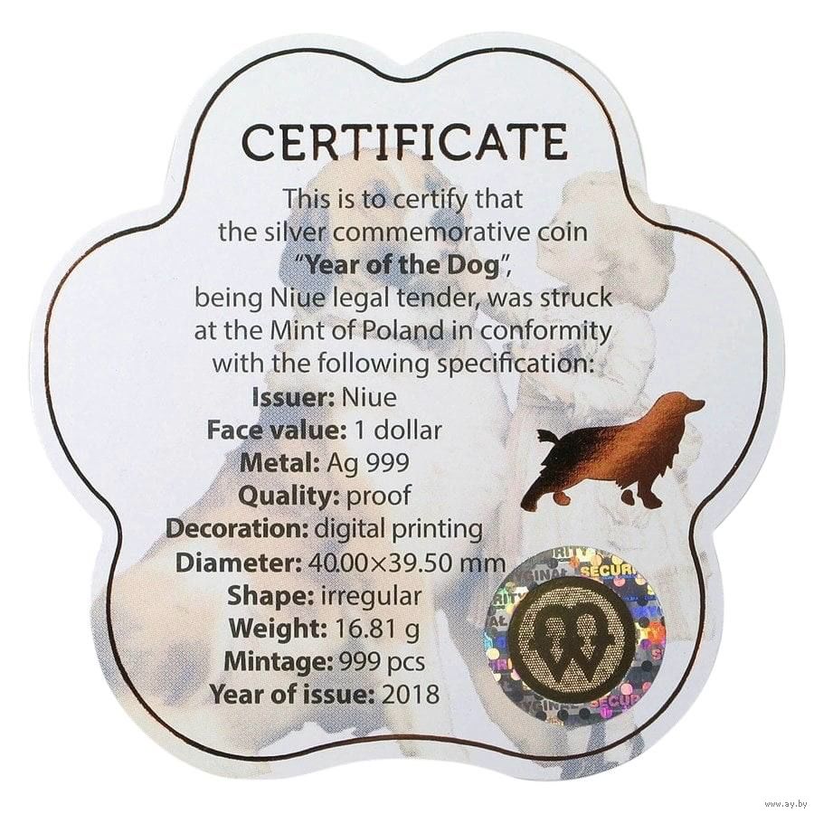 Эта прекрасная серебряная монета посвящена тем, кто родился в китайский лунный год Собаки, и считается подарком на крестины, либо день рождения младенца. Монета имеет красивый дизайн, великолепную расцветку, качество Proof и поставляется в специально разработанном подарочном футляре вместе с сертификатом подлинности. Ограниченный тираж — 999 экземпляров по всему миру.