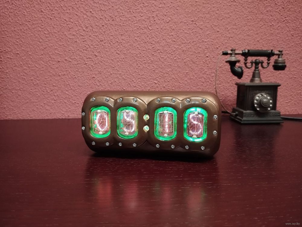 Светящиеся часы на ретро индикаторах тлеющего разряда СССР ИН-12.