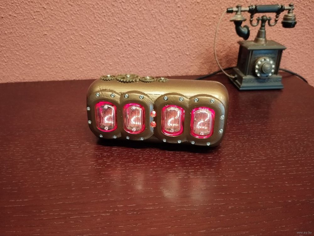Светящиеся часы на ретро индикаторах тлеющего разряда СССР ИН-12.
