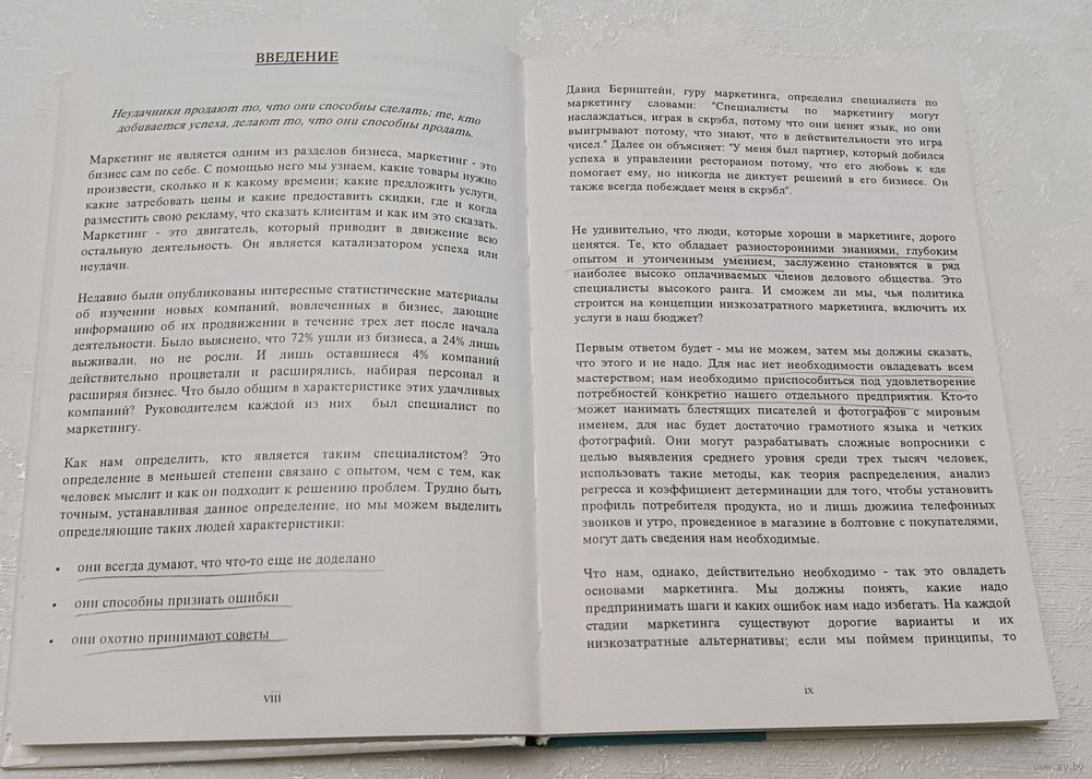 Эта книга знакомит с фундаментальными основами маркетинга, полна полезных советов о том, как сэкономить свои деньги и обеспечить хорошие результаты. Она утверждает четыре ключевых правила маркетинга: Думай, Говори, Сделай сам и Упрости.