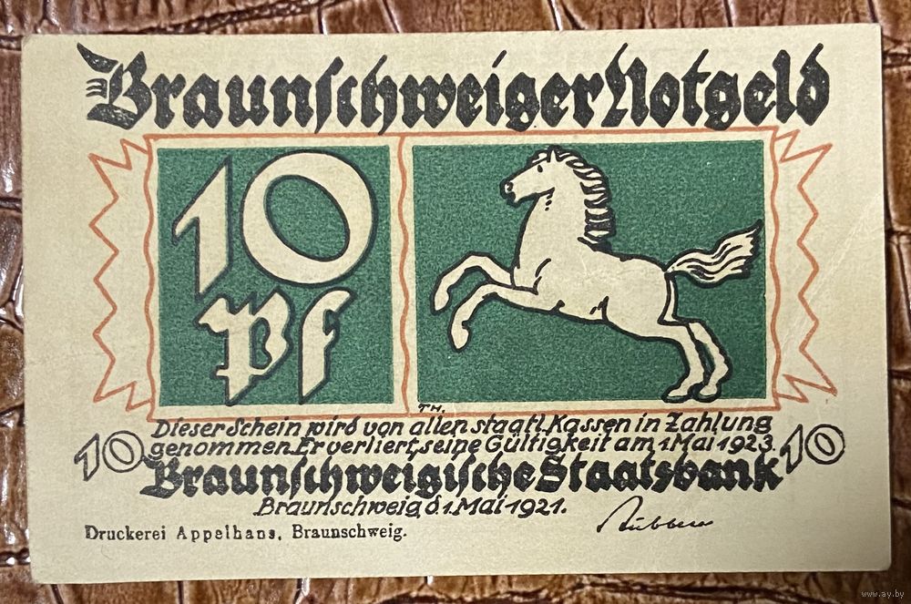 Нодгельд 10 пфеннигов 1921 год. Брауншвейг. Веймарская республика