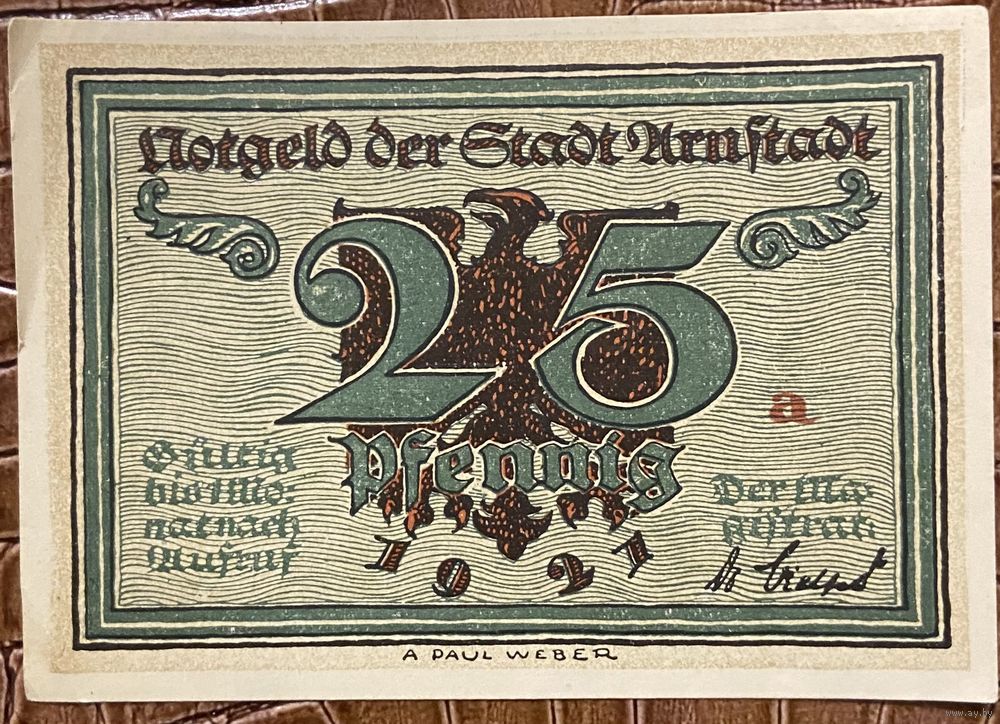 Нодгельд 25 пфеннигов 1921 год. Арнштадт. Веймарская республика