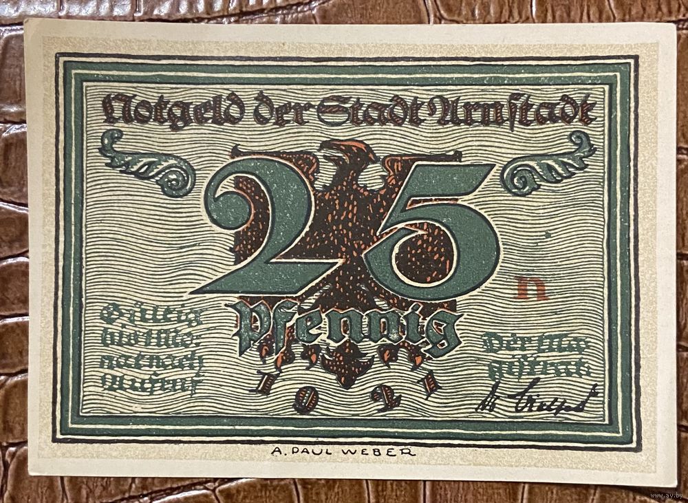 Нодгельд 25 пфеннигов 1921 год. Арнштадт. Веймарская республика