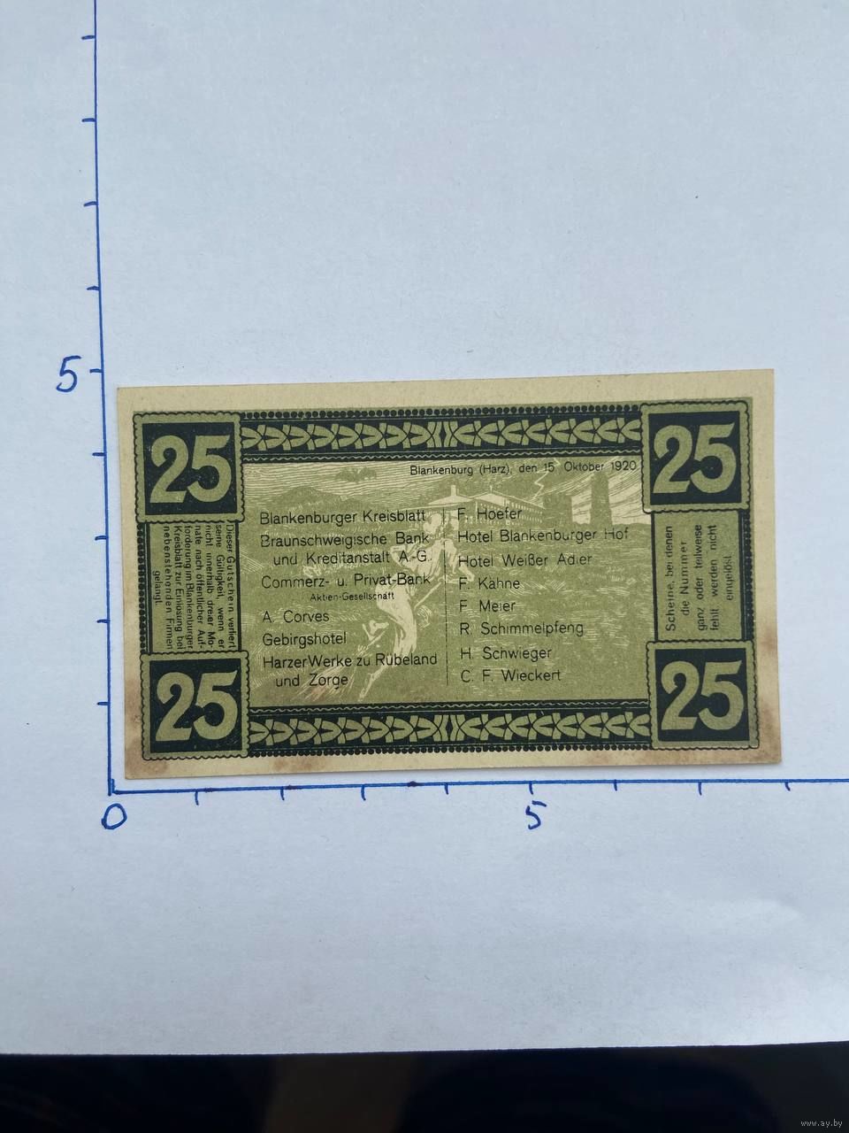 Нодгельд 25 пфеннигов Глауфенбург и Харц. Веймарская республика - 0202